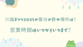 - 川越市役所駐車場(臨時開放):まつり会場まで徒歩10分。朝9時までの到着がおすすめ。