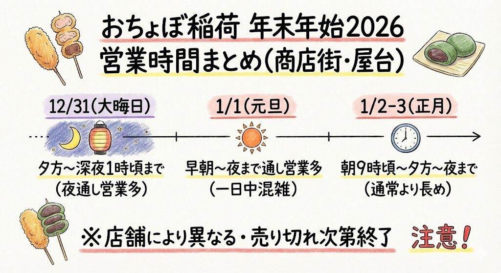 おちょぼ稲荷の年末年始2026の商店街・屋台の営業時間まとめ